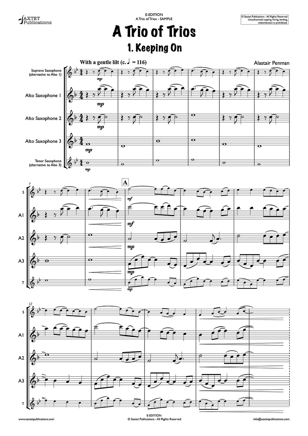 Not all of Alastair's compositions are currently published, so if you are looking for a work that you cannot find listed here please contact alastair@alastairpenman.co.uk